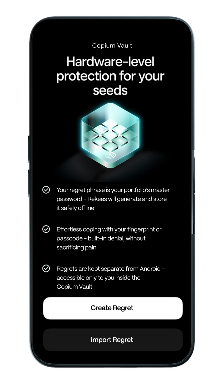 Native hardware Copium Vault built for RKS holders. Protect your assets with fingerprint authentication and double-tap denial. Your keys stay safe, your allocations stay bad.